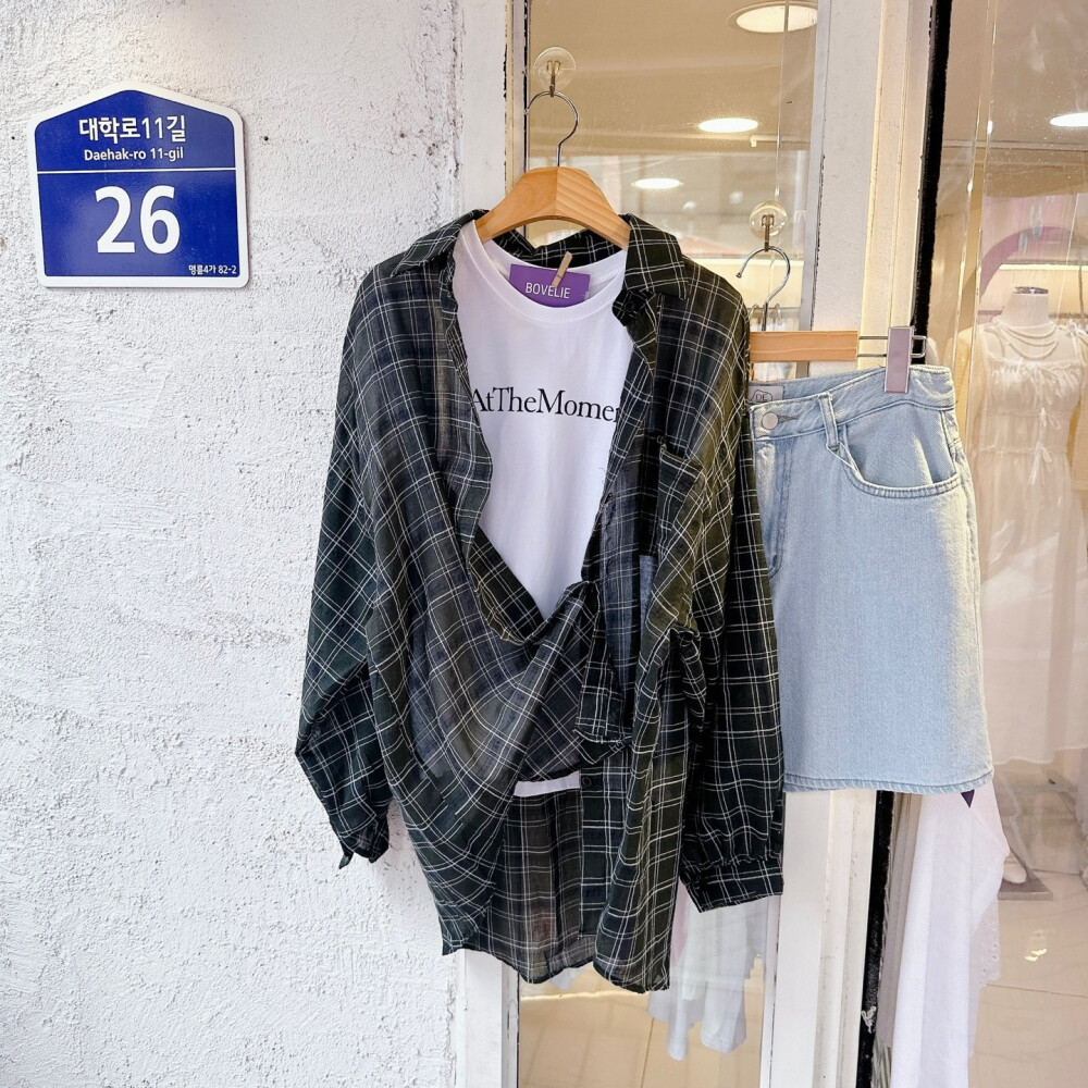 [보블리에] 데일리 오버핏 체크 셔츠 남방