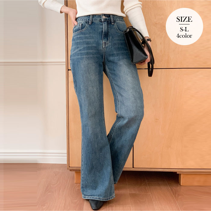 피기 부츠컷 워싱 데님 팬츠_F4148