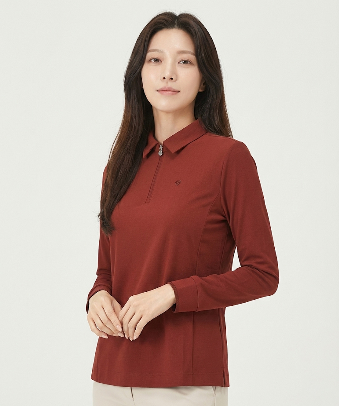 [PAT 여성] 트리코트골지 반집업 카라 티셔츠_1J65132
