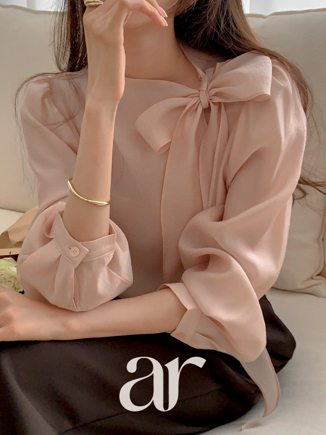 [프롬리리컬] (봄컬러추가/얼굴광채템♥/봄하객룩/7부소매 추가) 로이 리본 타이 소매 블라우스 bs8404
