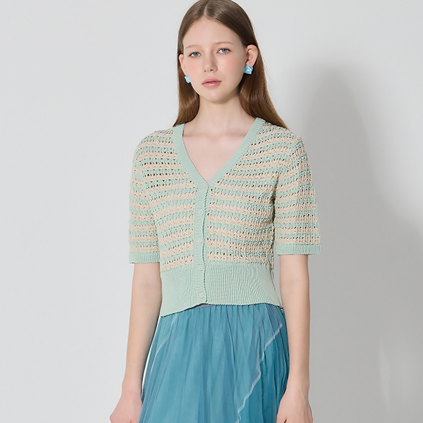 [오조크(OZOC)] 배색 스카시 반팔가디건 (택가격: 87000원)