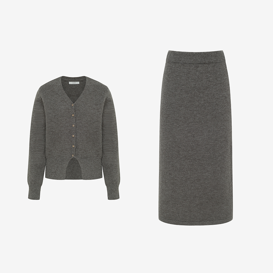 브이넥 니트 가디건 + 니트 스커트 SET (VLOCY1989)