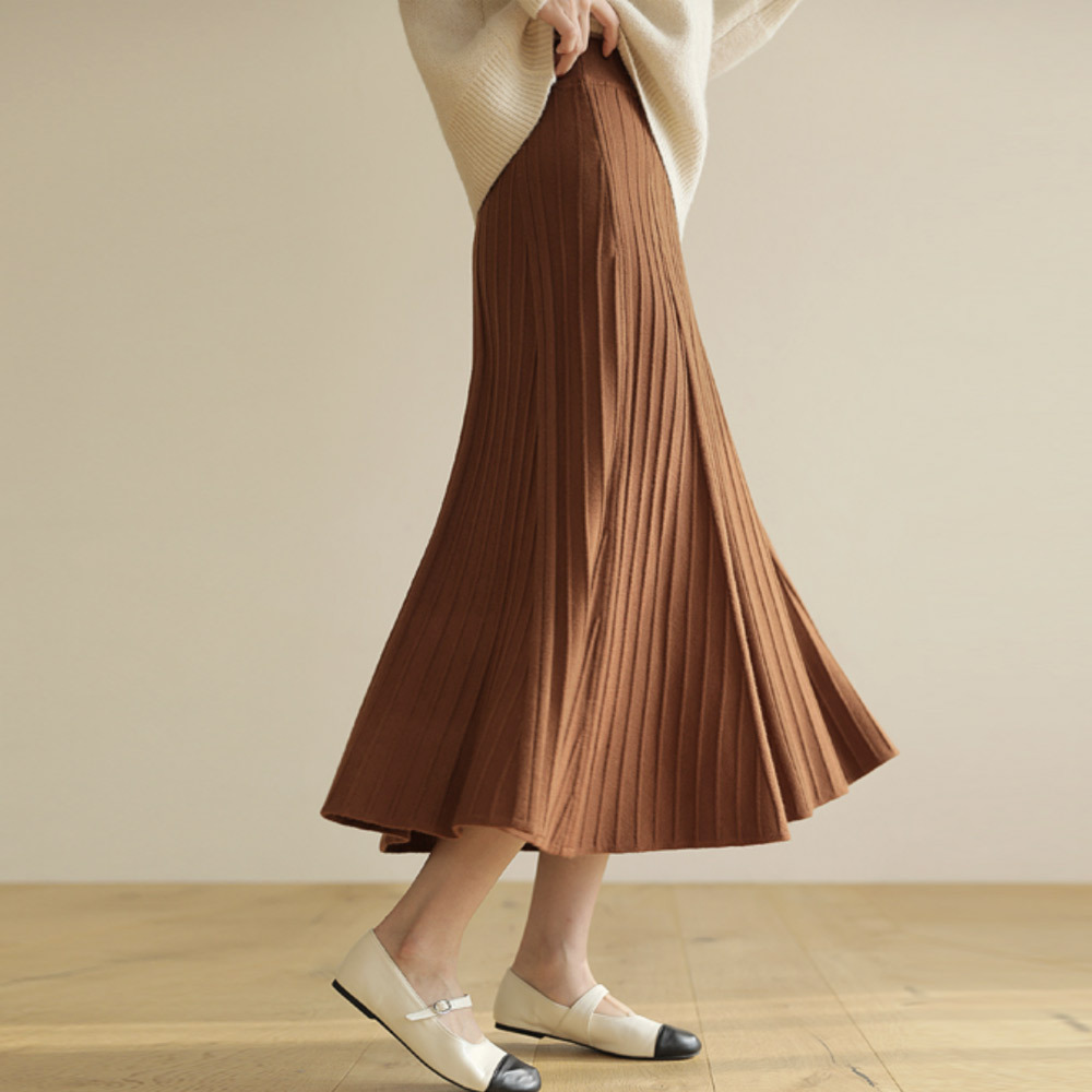 밴딩 플리츠 플레어 니트 롱스커트