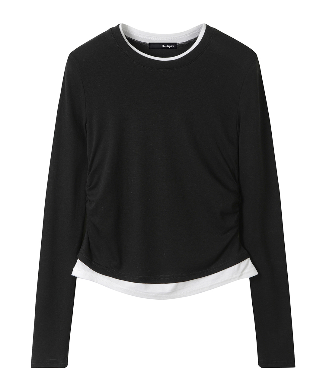 라운드 배색 셔링 긴팔 티셔츠 (XP3LW002L0)
