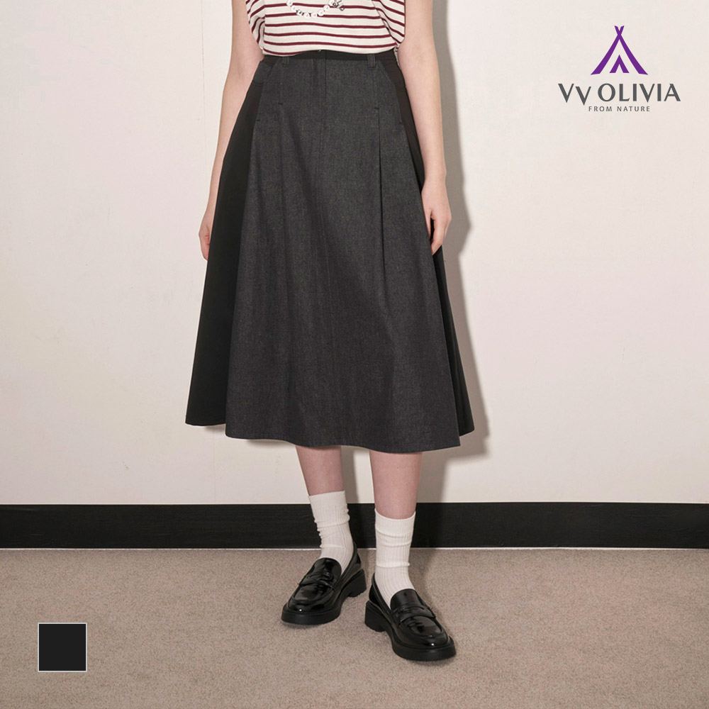 [25 신상] 데님 패치 플레어 스커트_VVCDK5F8361