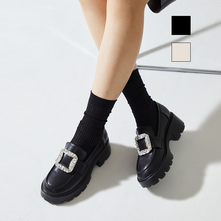 [무크] 여화 티나 소가죽 쥬얼 청키로퍼 2colors