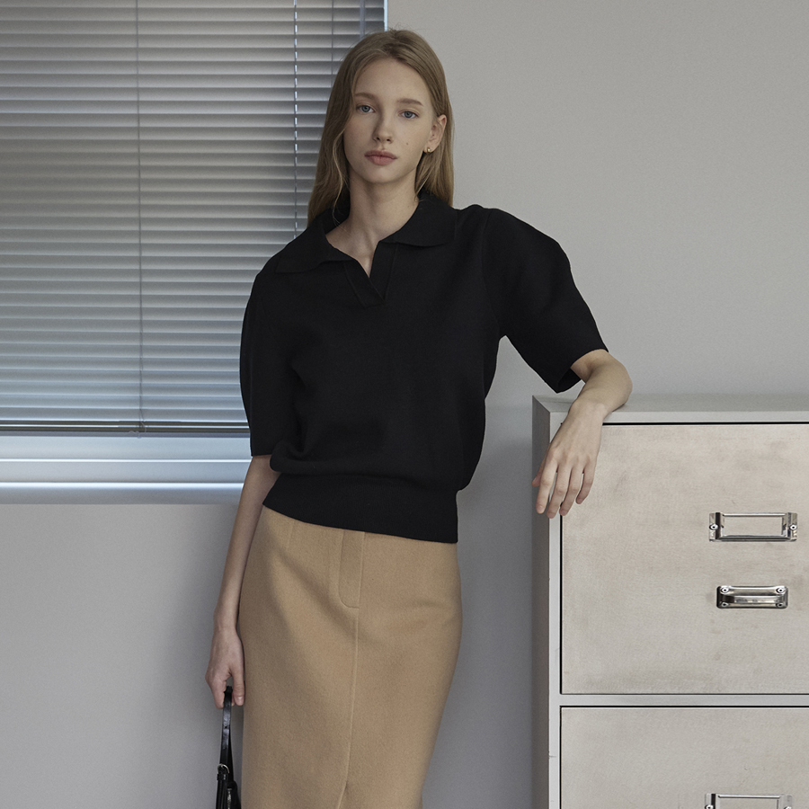 (더아이잗) 볼륨 슬리브 칼라 풀오버 니트 IRUP1PO601