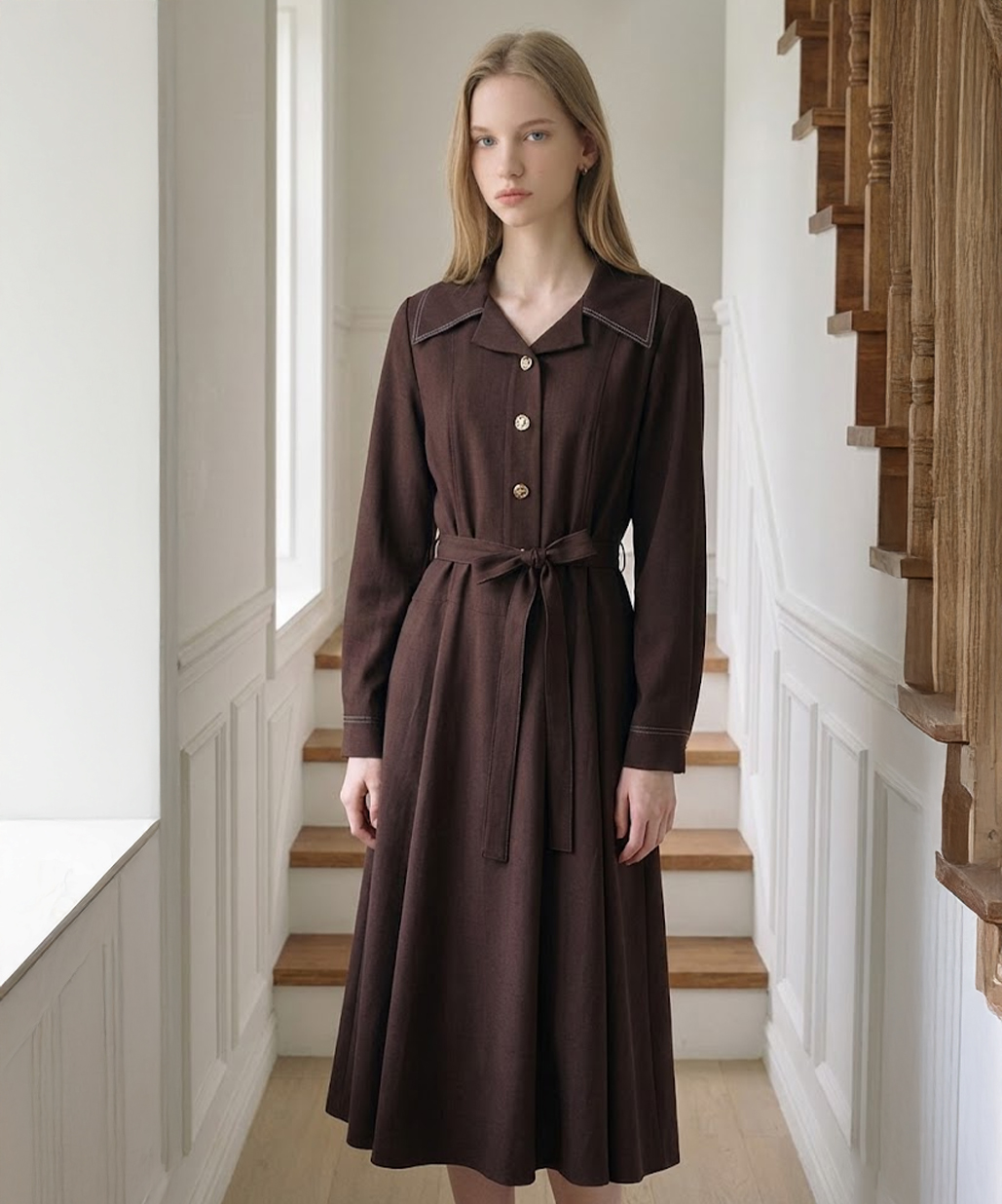 핀턱 오픈카라 버튼업 원피스 (SHOAX2509)