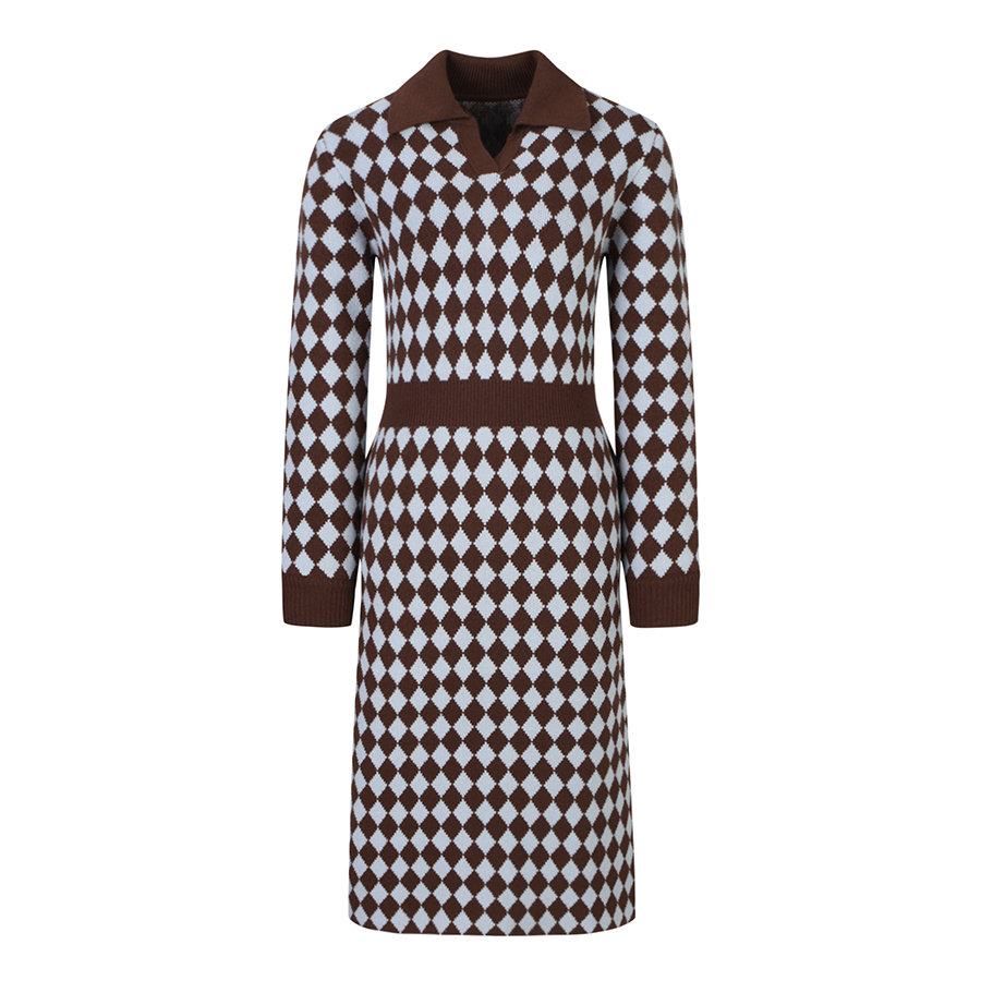 할리퀸체크 카라 니트 원피스 (SHOCX2938)