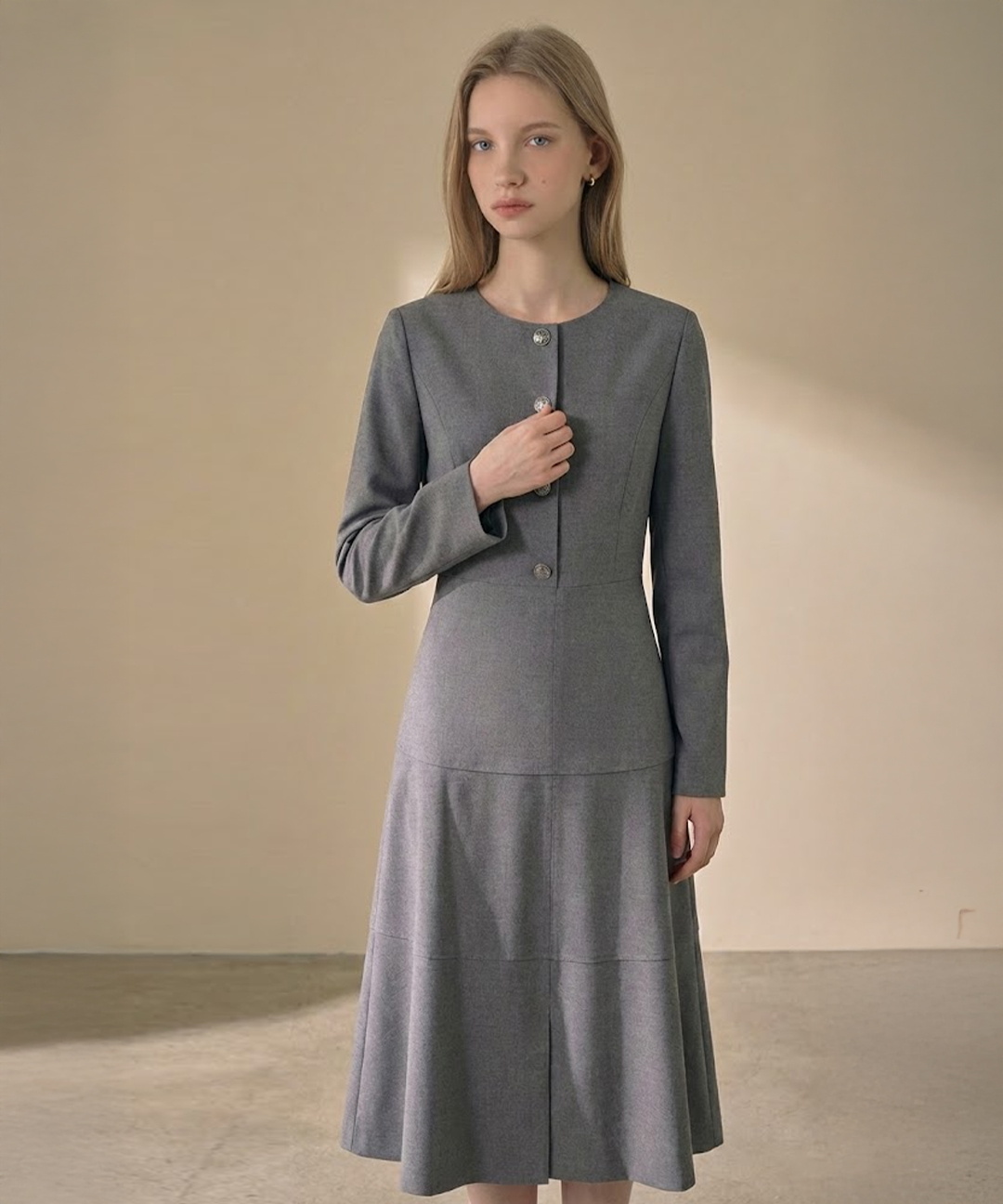 버튼업 티어드 라운드 원피스 (SHOAX2514)
