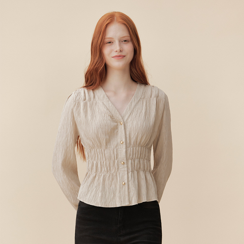 플리츠 셔링 버튼 블라우스 (TLBAI2407)