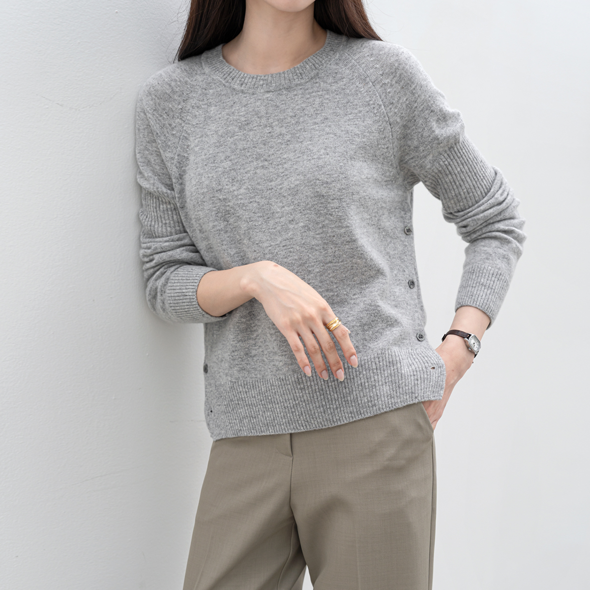 [모노앳디] 리메 울 사이드 버튼 니트