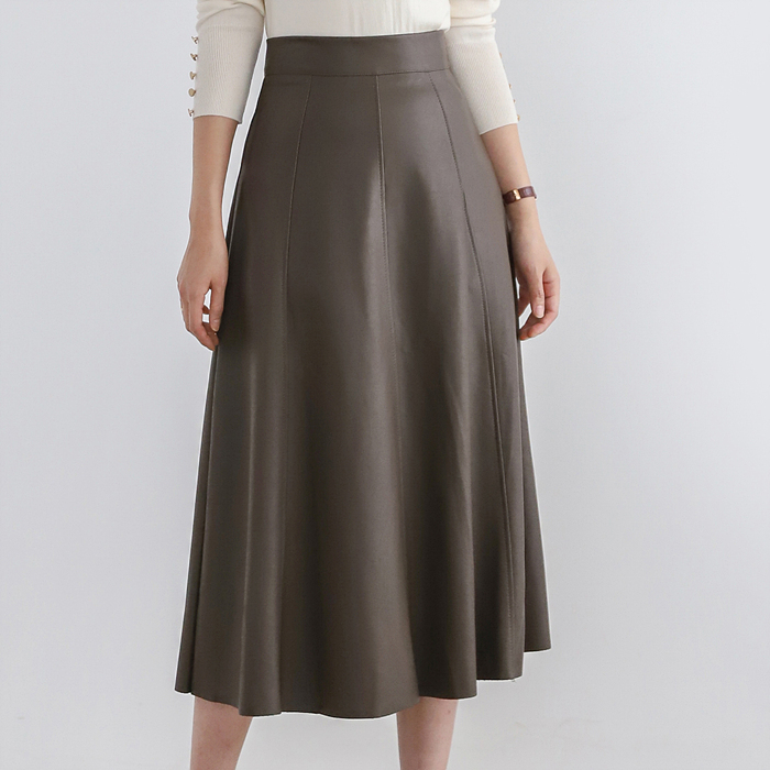 [플랜비컬렉션] [55-77]베이직 인조가죽 플레어 롱 스커트_PM2509SK602C