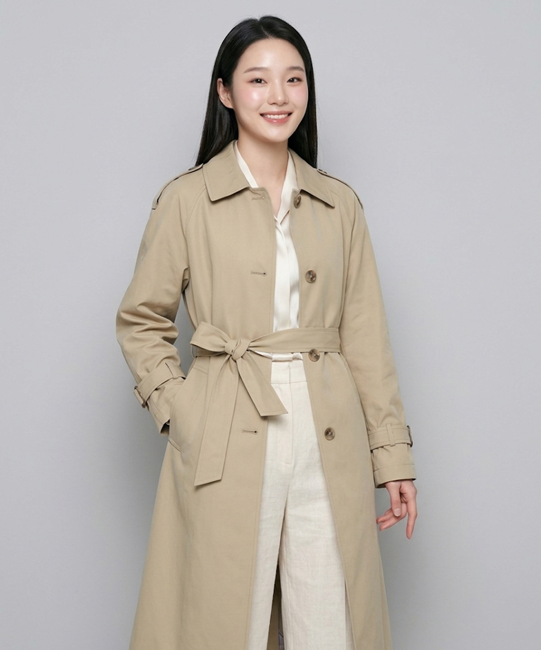 피어로즈 벨티드 맥시 트렌치 코트 LFCAO292_BE