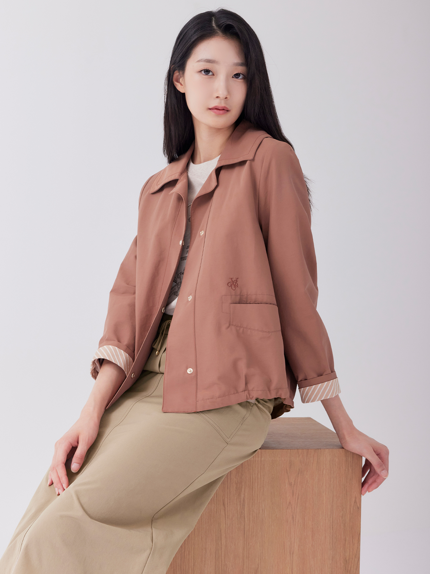 [매장동일상품] 스탠카라 스트라이프 배색 숏 코트 LCCAO924_RU
