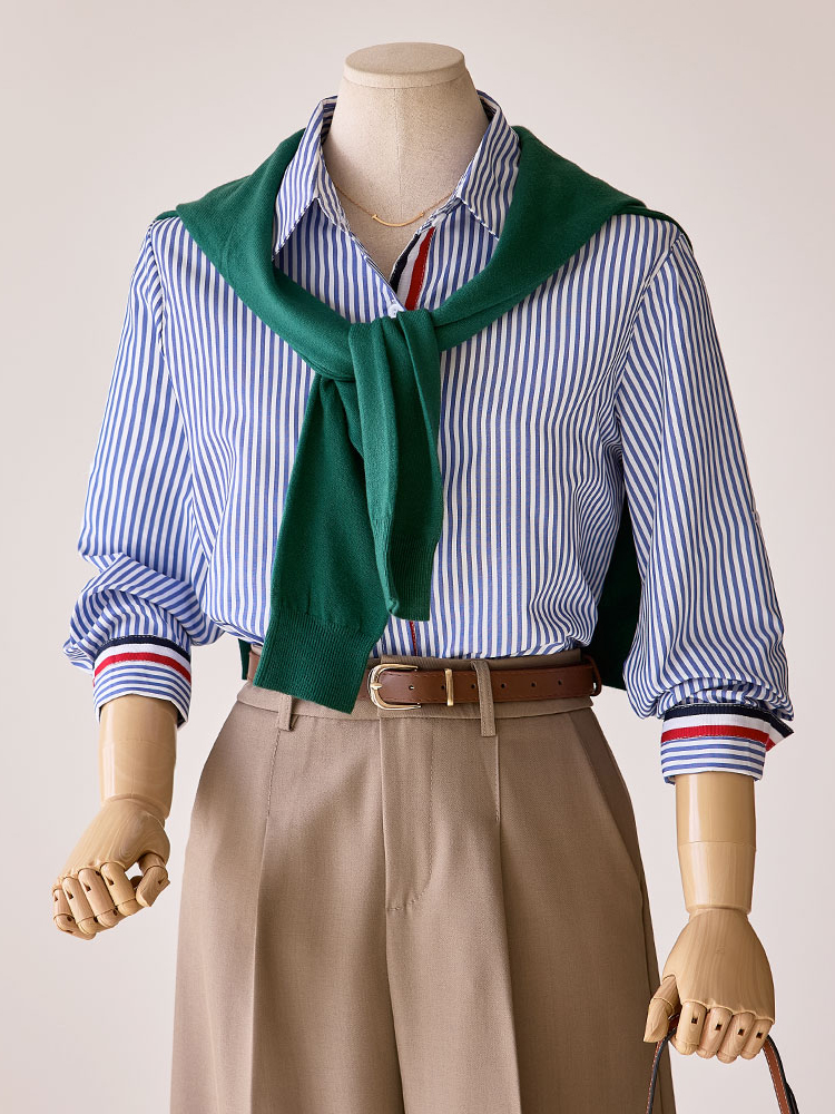 [커스텀에이블] 스트라이프 테잎배색 긴팔셔츠_T2509BL097C