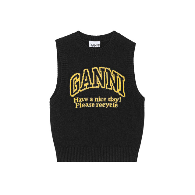 가니 그래픽 라운드넥 니트 조끼 블랙 여성 K2091 099