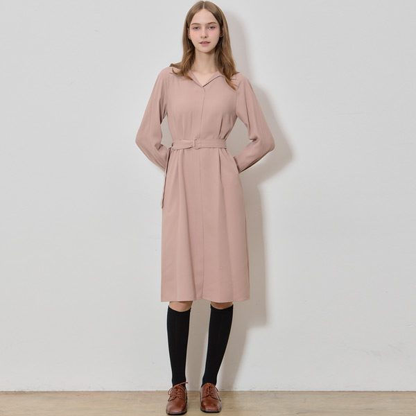 [쉬즈미스(SHESMISS)] 클래시컬 오픈 카라 벨티드 원피스 (택가격: 318000원)