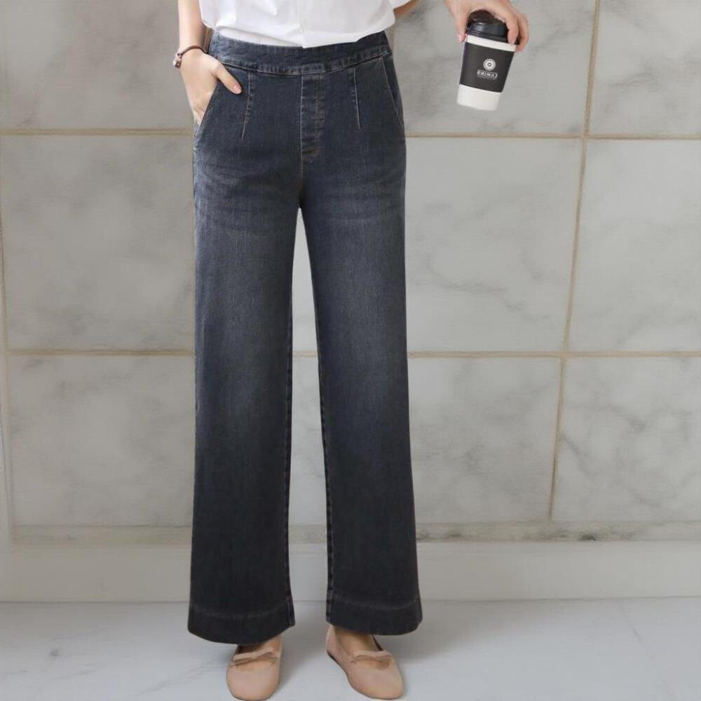 [옷자락] 여성 가을용 데님 일자핏 스판 반밴딩 청바지