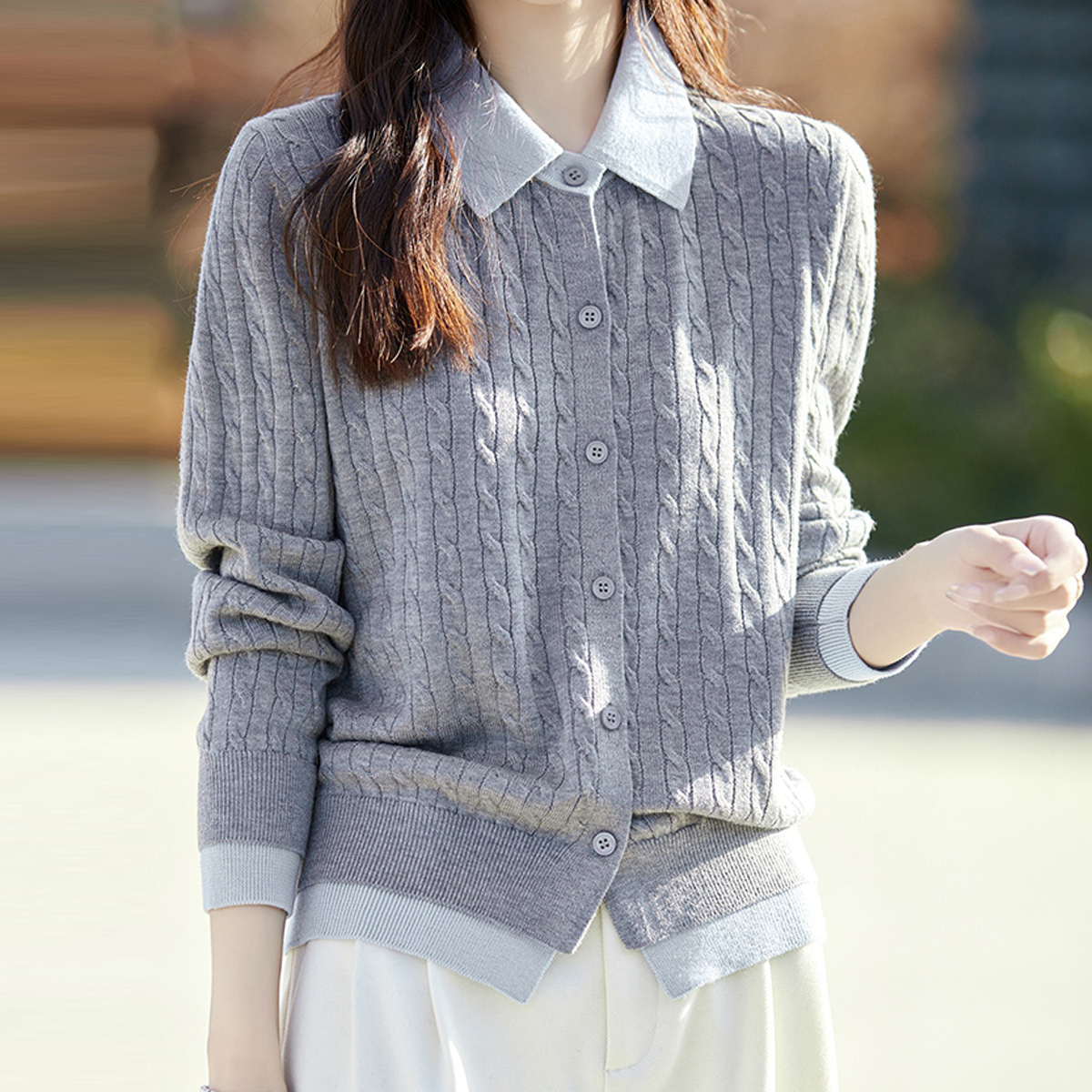 KARRA 카라버튼꽈배기니트가디건_A5F0124