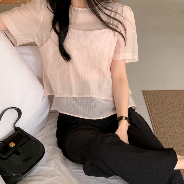 [프롬리리컬] (긴팔추가!/세트템/구김↓) 로베리 링클 뷔스티에 레이어드 블라우스 bs8373