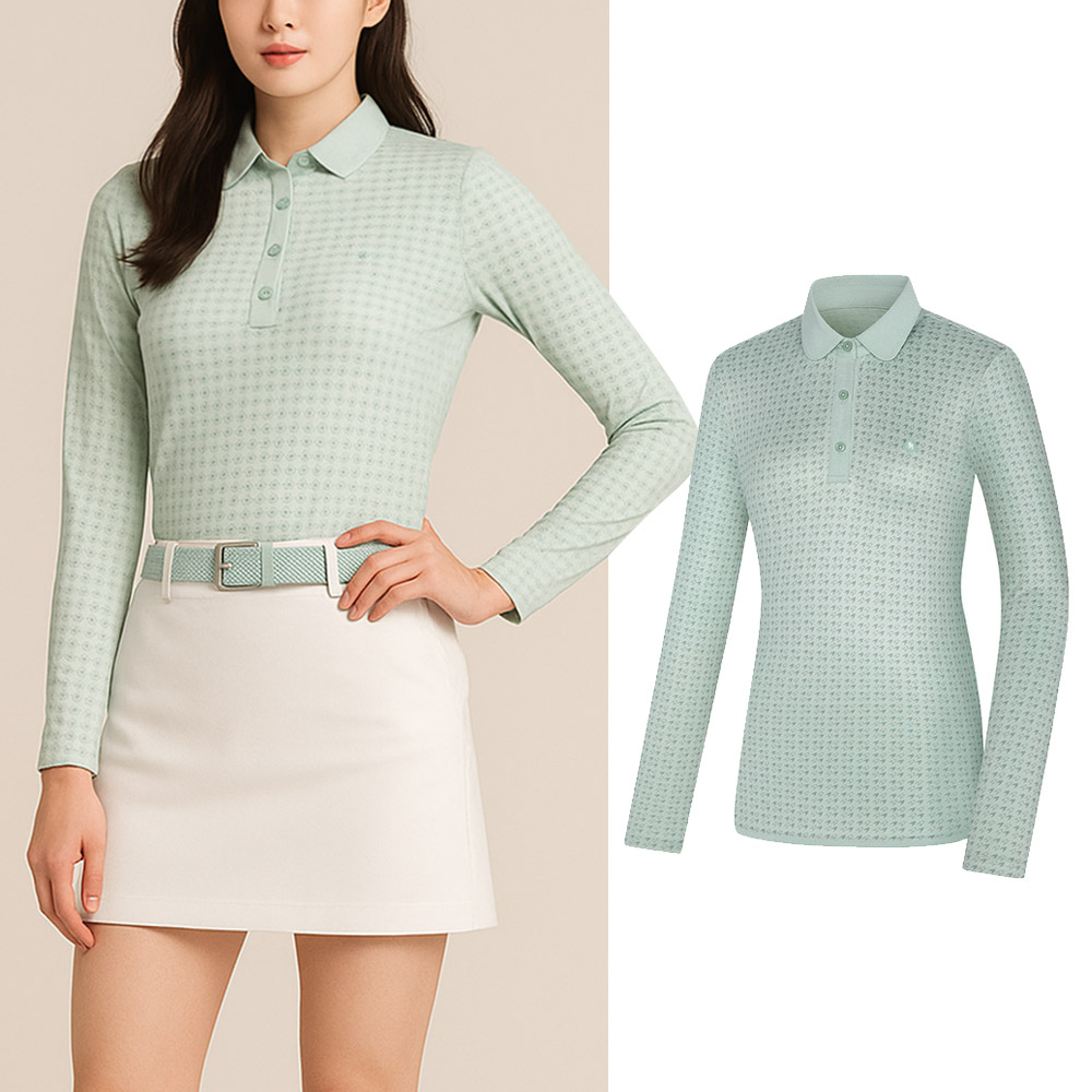 비티알 여성 약기모 하운드투스 프린트 골프 긴팔 카라 티셔츠 BSC414TT3W