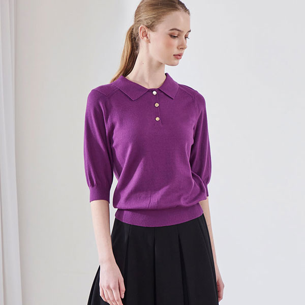 [로코엘라] 뮤렌 단추 포인트 카라넥 여성 니트