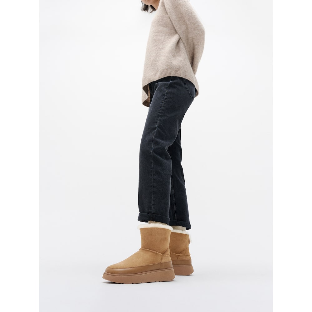 [삼성물산공식][GENFF] 여성 미니 더블 페이스드 시어링 부츠 데저트 탄
