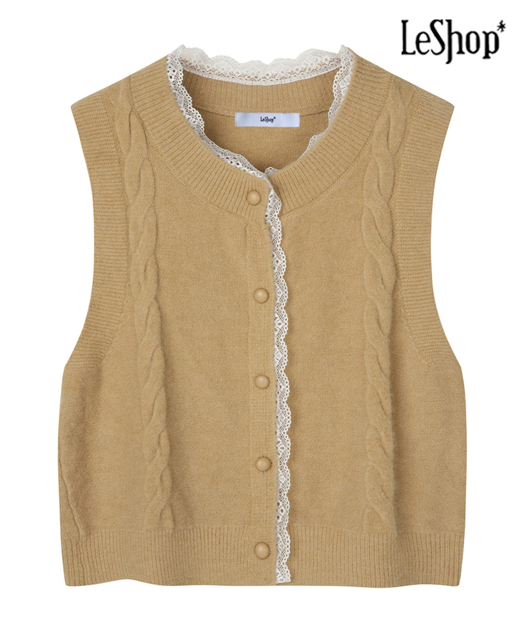 [르샵] 레이스 트리밍 꽈배기 니트 베스트 (BP9VT009A)
