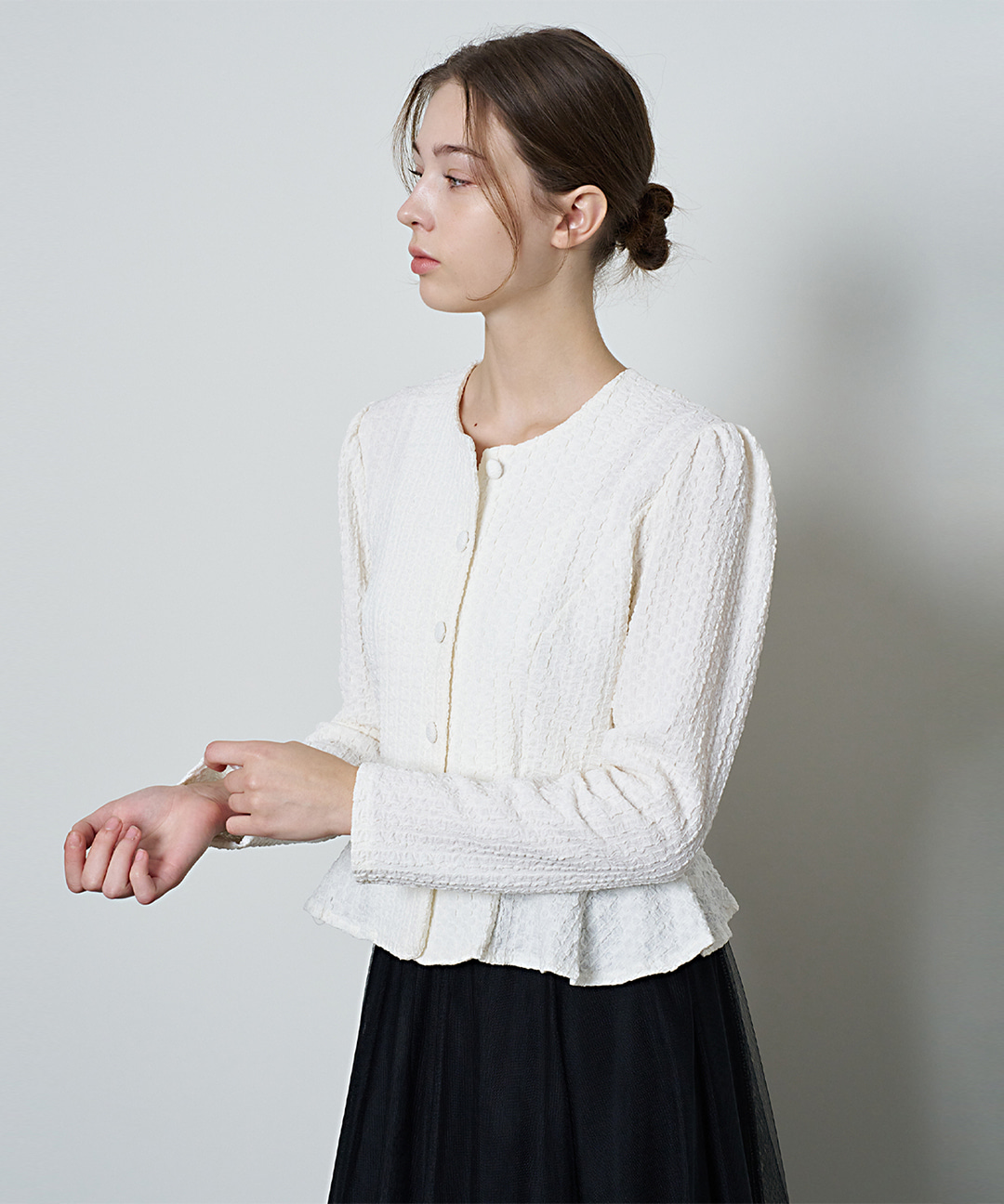 [미니멈 에브리데이]페미닌 프릴 라인 긴팔 블라우스 (EB3BA046D)