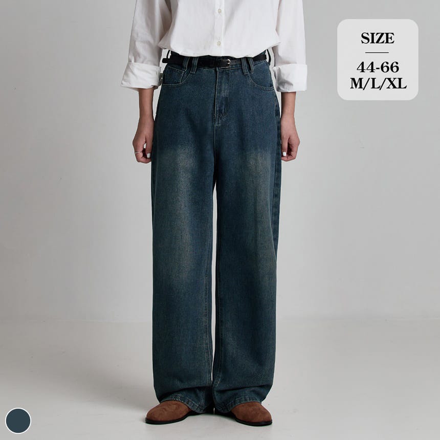 [포레스트핏] 하이웨스트 워싱 와이드 데님 팬츠 (J2435)