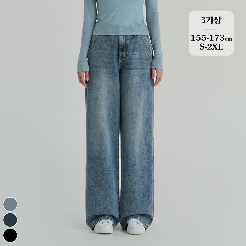 [포레스트핏] (노컷진71탄) 탄탄 절개 밴딩 와이드 데님 팬츠