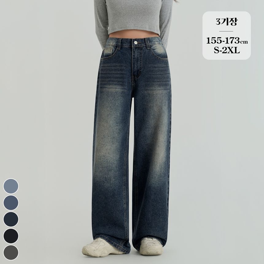 [포레스트핏] (또입진18탄) 워싱 와이드 뒷밴딩 데님 팬츠