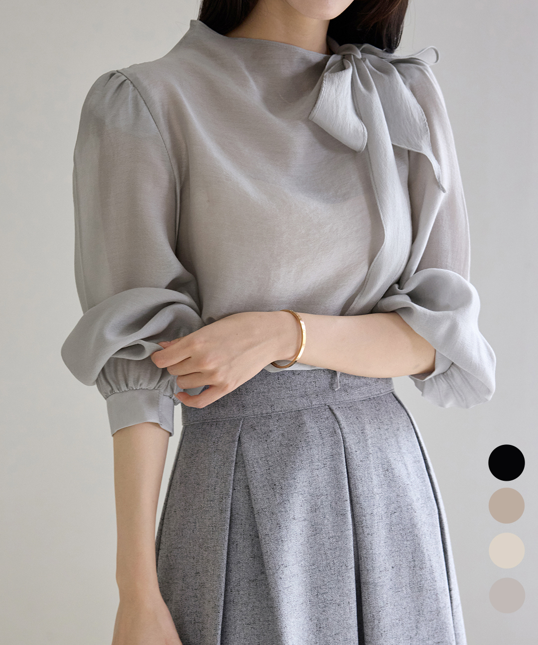 [모리스커밍홈] 샤이닝 사이드 타이 블라우스_M2509BL085C