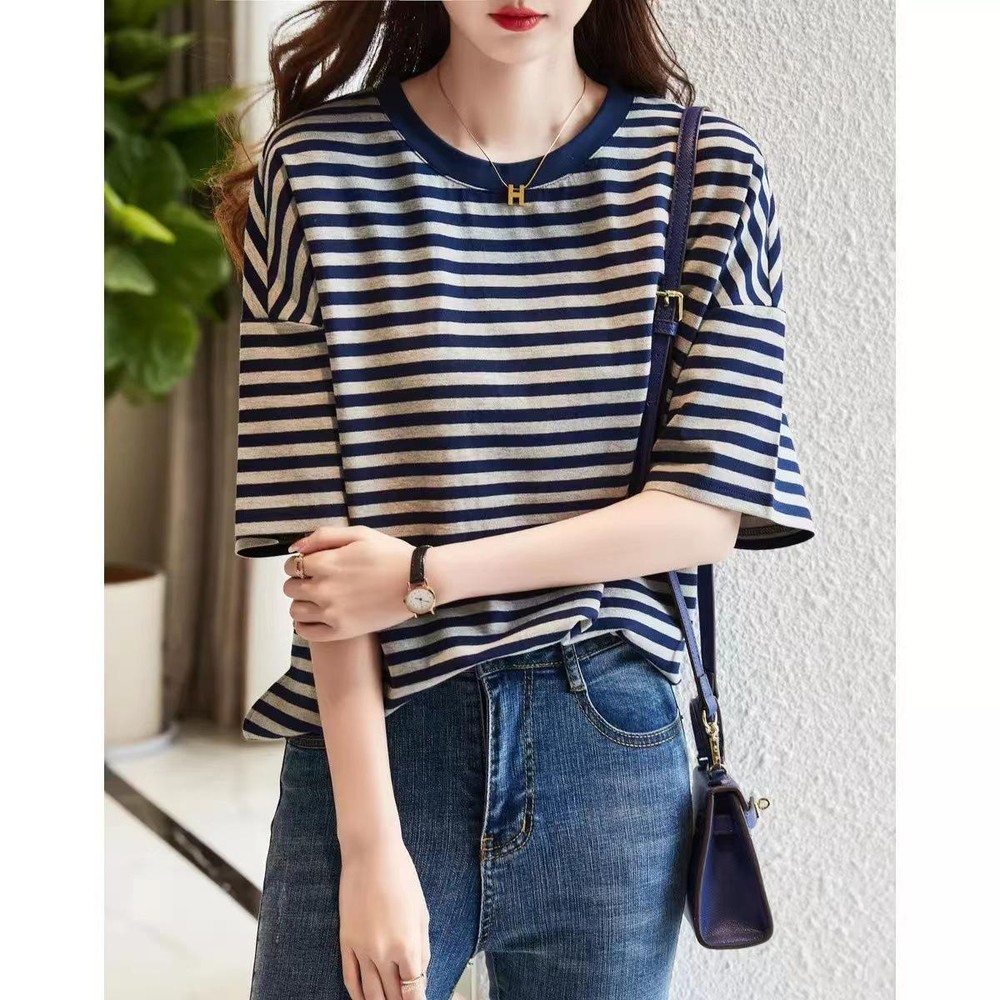 [제로투올샵2] 2025 여름 여성 스트라이프 반팔 티셔츠 이미지색 S