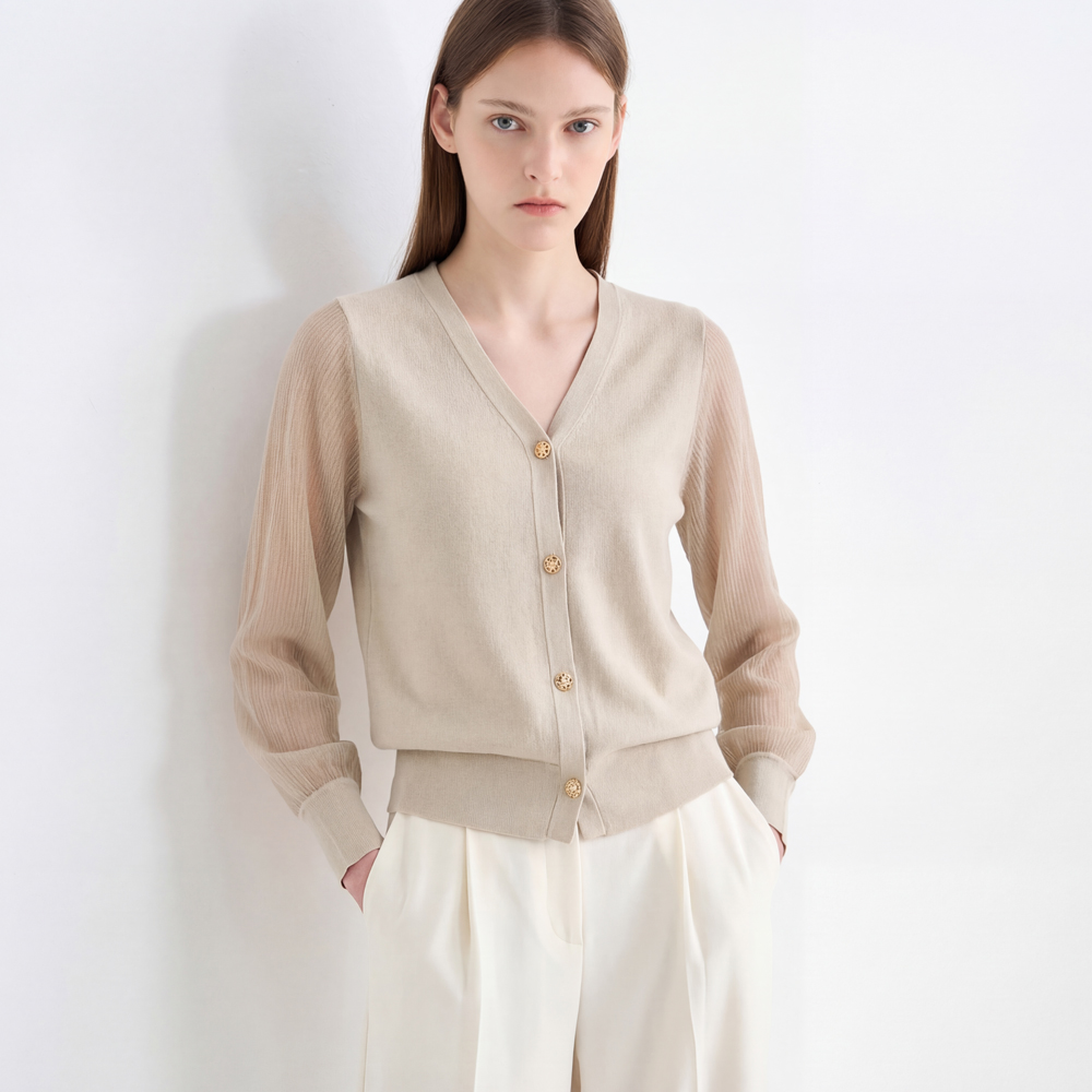 [데코] (본사직영) 시스루 슬리브 브이넥 가디건-FDCKD3803B