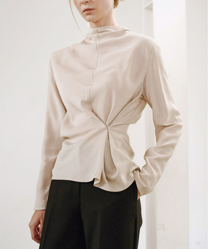 터틀넥 뒷단추 킨블라우스_YMSH25FW092