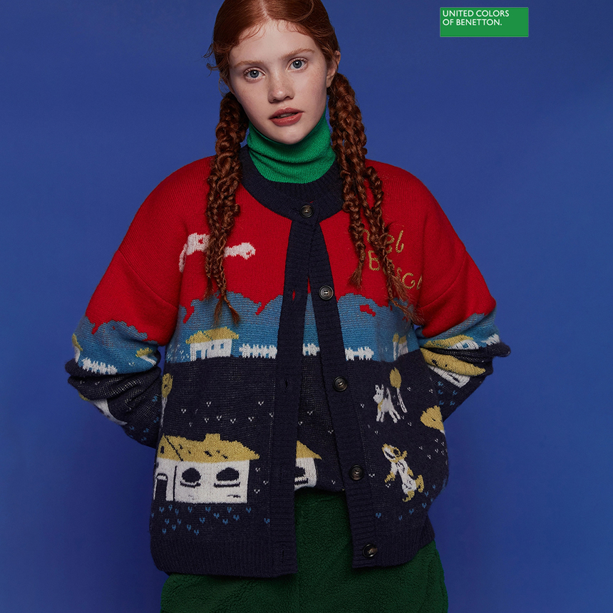 베네통 들판 라운드넥 니트 가디건 BAKCA6561