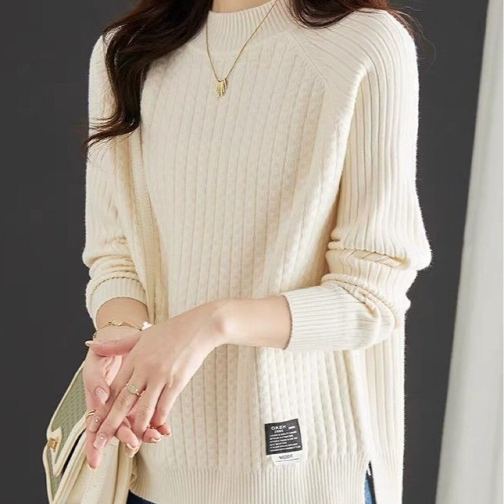 [제로투올샵2] 여성용 화이트 긴팔 반목 니트 크롭티 블랙 S