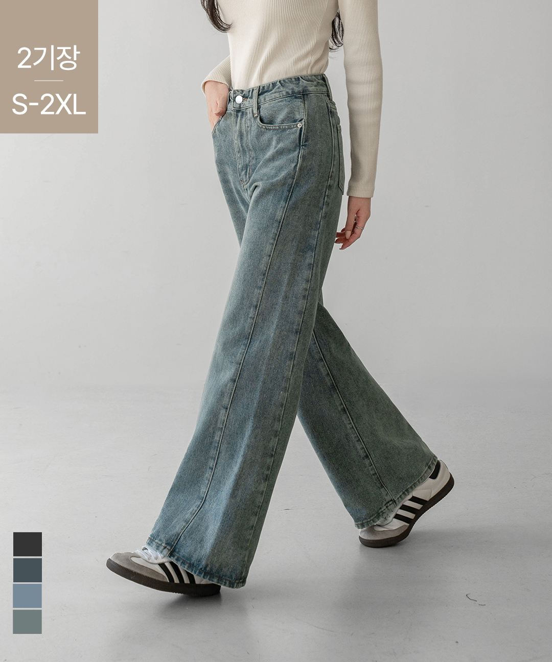 [진에비뉴] 마일드 옆절개 데님 와이드 팬츠