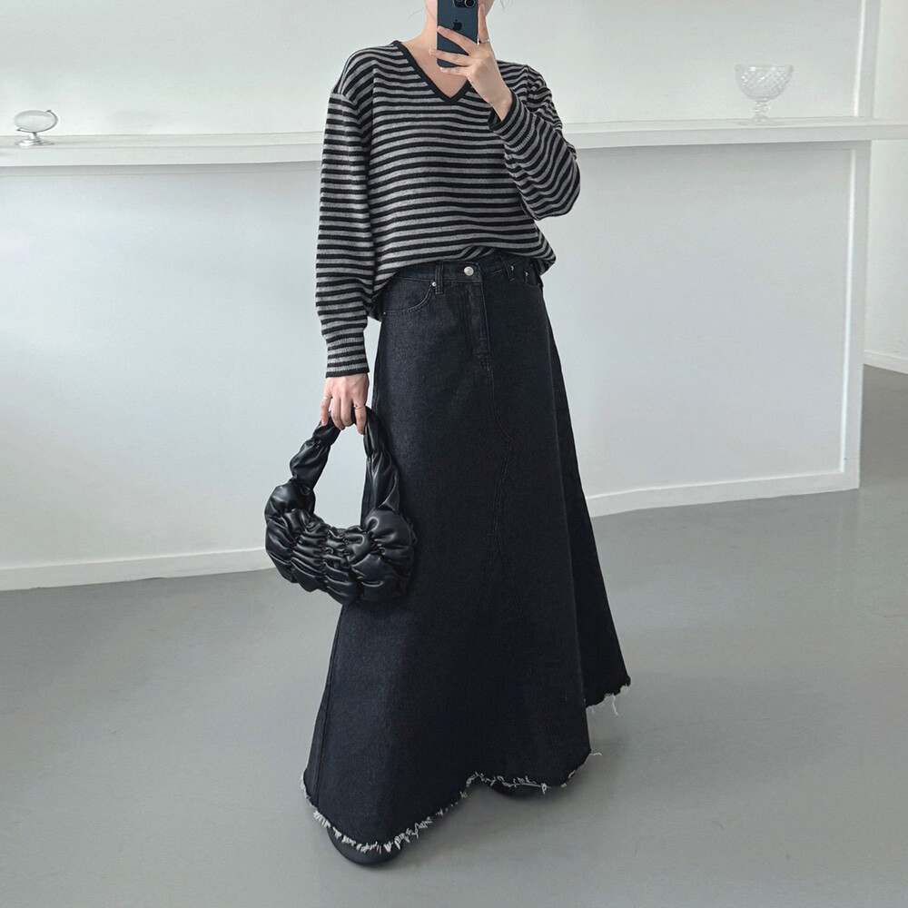 [러블리감성] 가을코디 A 흑청 데님 롱 스커트 청치마