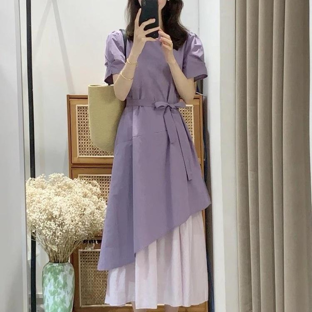 [제로투올샵2] 여름 퍼플 허리라인 슬림핏 빅사이즈 투피스 퍼플 S