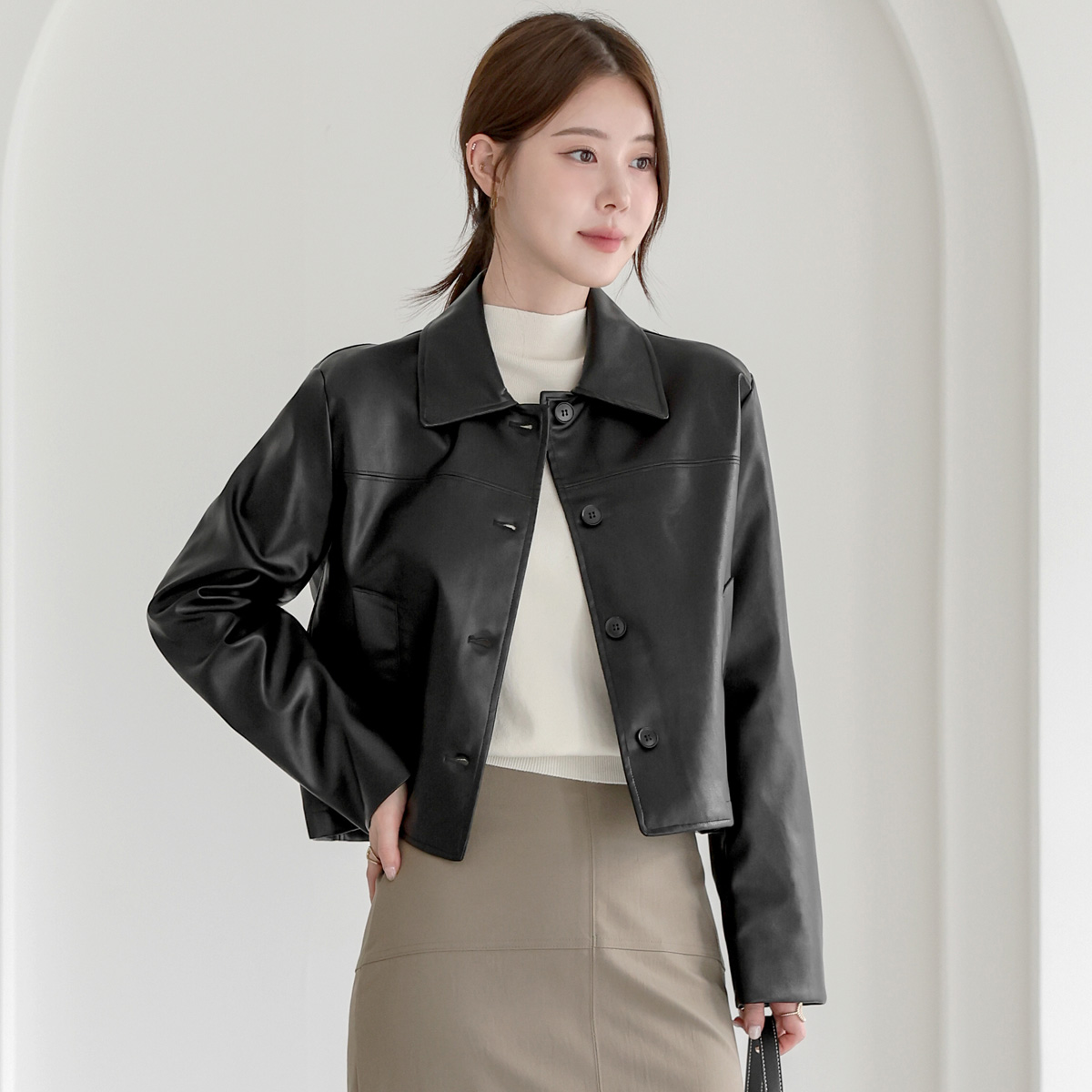 [오브리에] 모트아 카라 크롭 레더 자켓