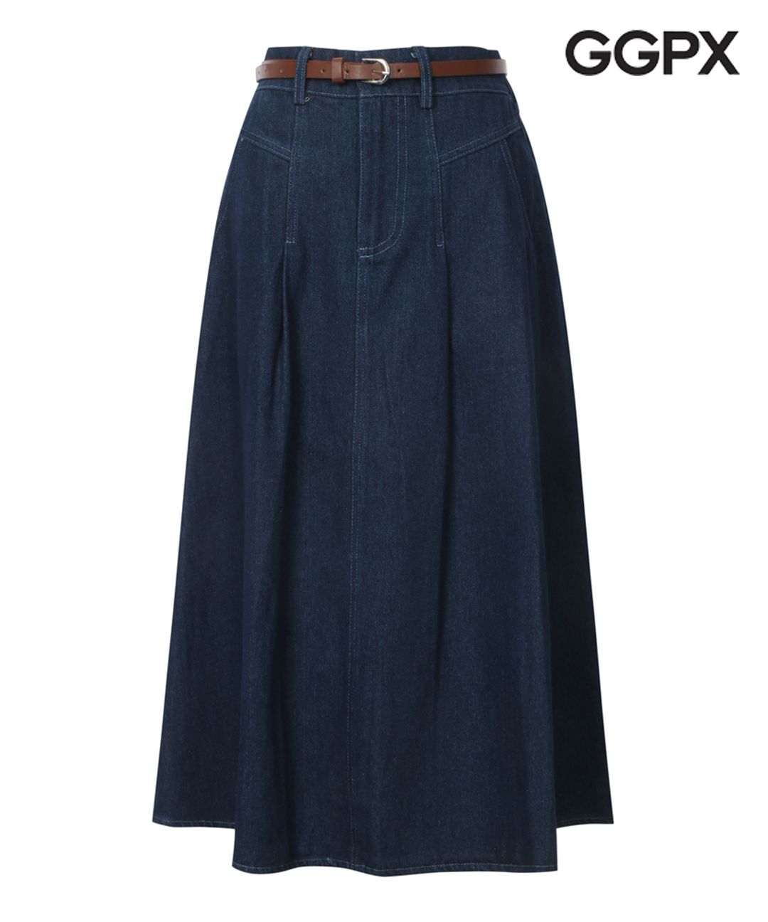 [GGPX] 비건 레더 벨트 세트 A라인 데님 롱 스커트 (GP9SK029B)