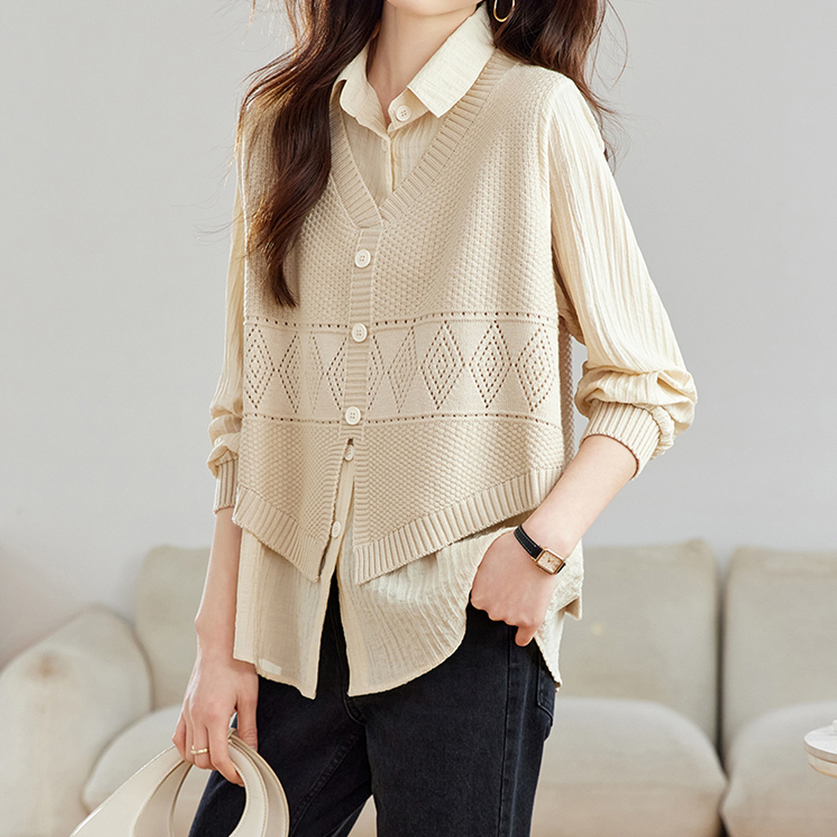 KARRA 믹스아가일니트블라우스_A5F0232