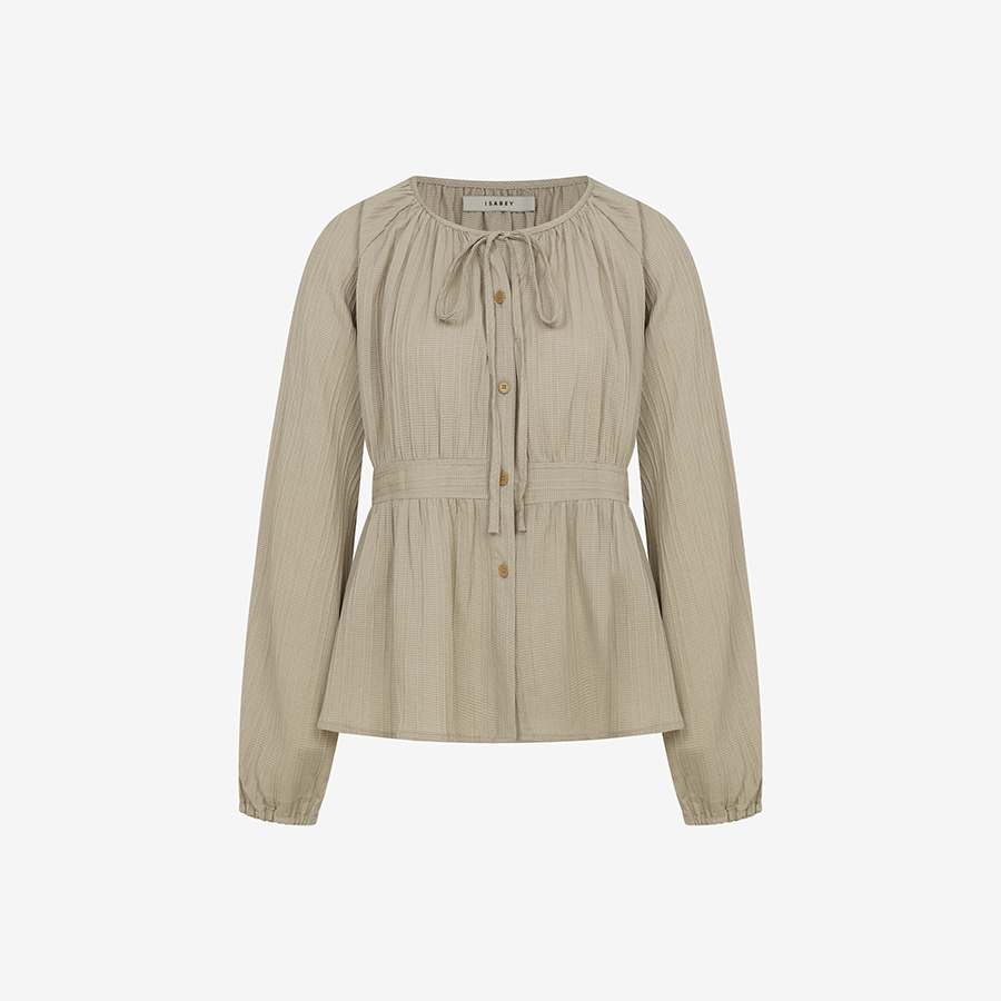 스쿱넥 리본 셔링 긴팔 블라우스 (VLBAH2406)