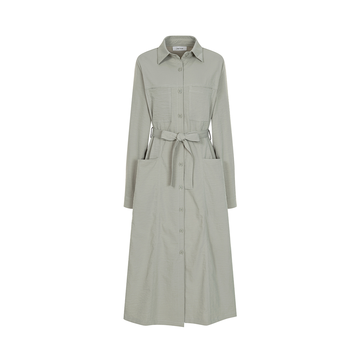 라임스토리 벨티드 포켓 셔츠 롱 원피스 LJ9OP428