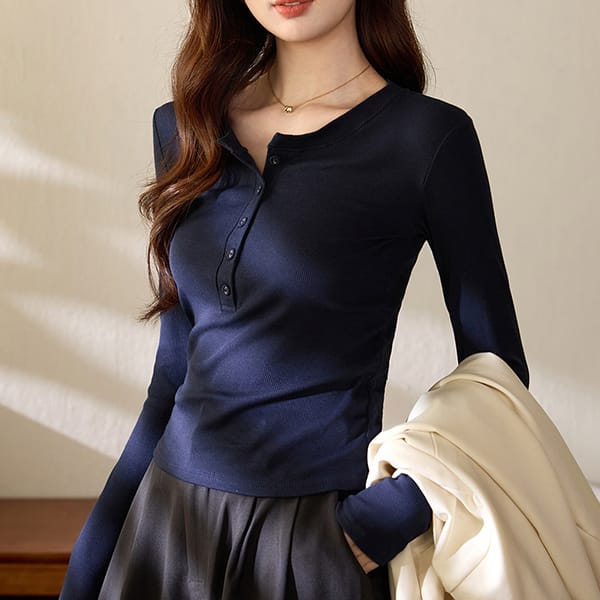 [나바바] NT3046 골지 베이직 헨리넥 긴팔 티셔츠