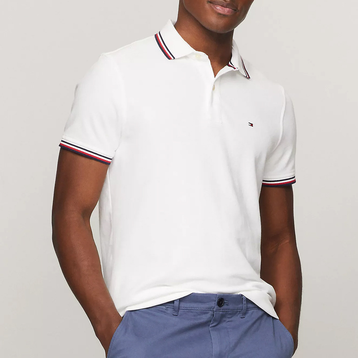 타미힐피거 남성 레귤러핏 Wicking 반팔카라티 White2