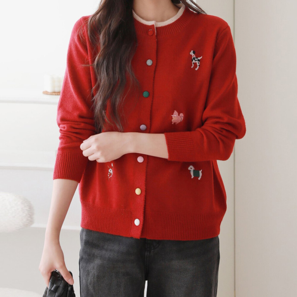 [프롬하트] [프롬하트] 여성 빅사이즈 도그 자수 니트가디건